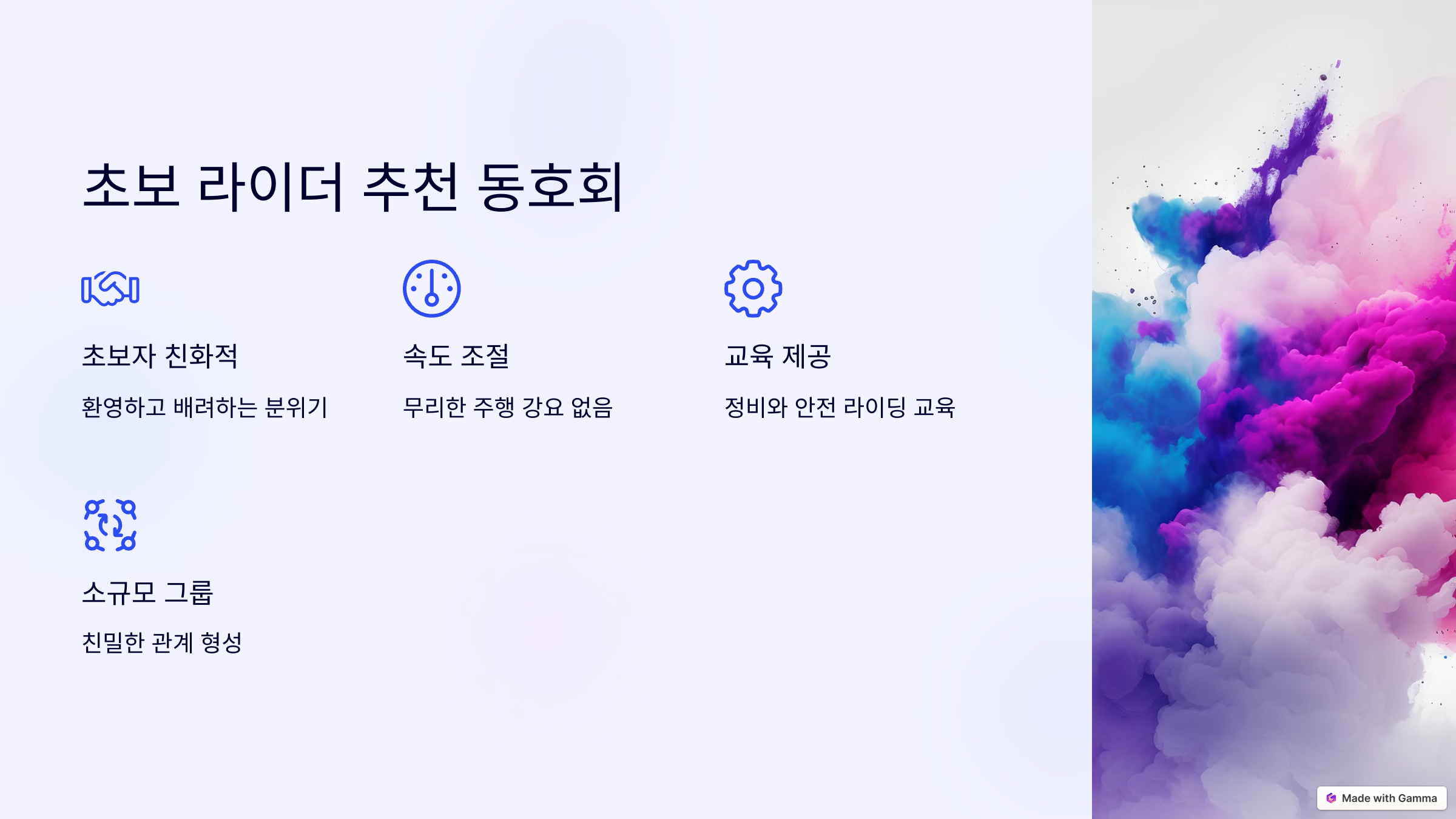 🏁 초보자 친화적인 분위기 초보자를 환영하고 배려하는 동호회를 선택하세요!