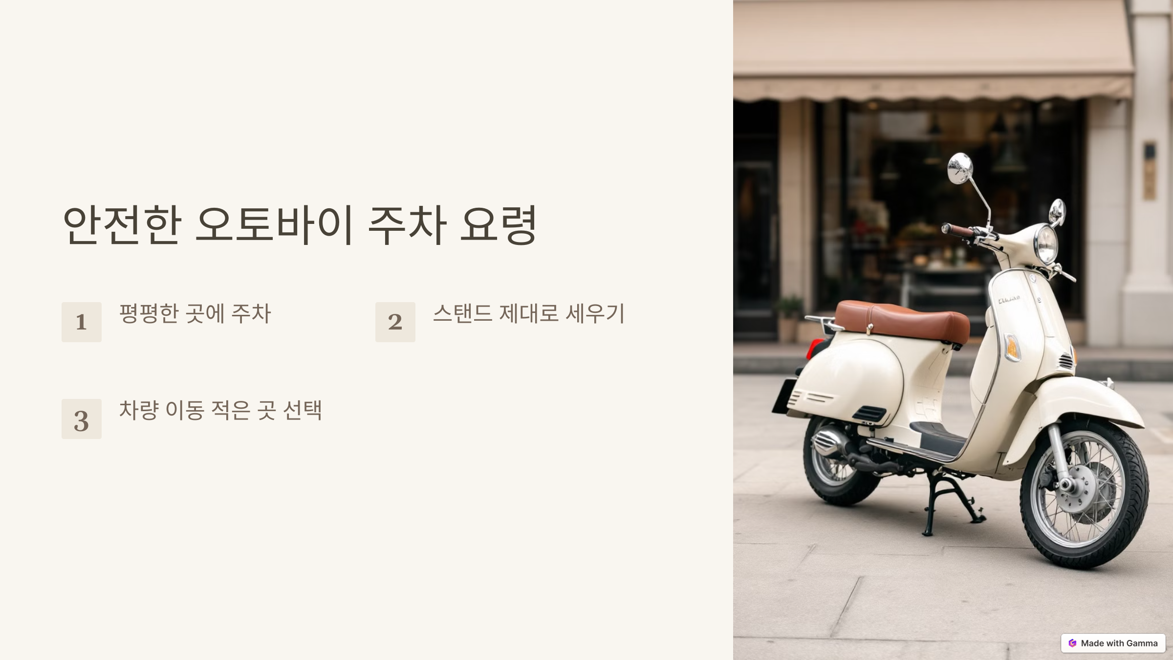 1. 안전한 오토바이 주차 요령 🏍️