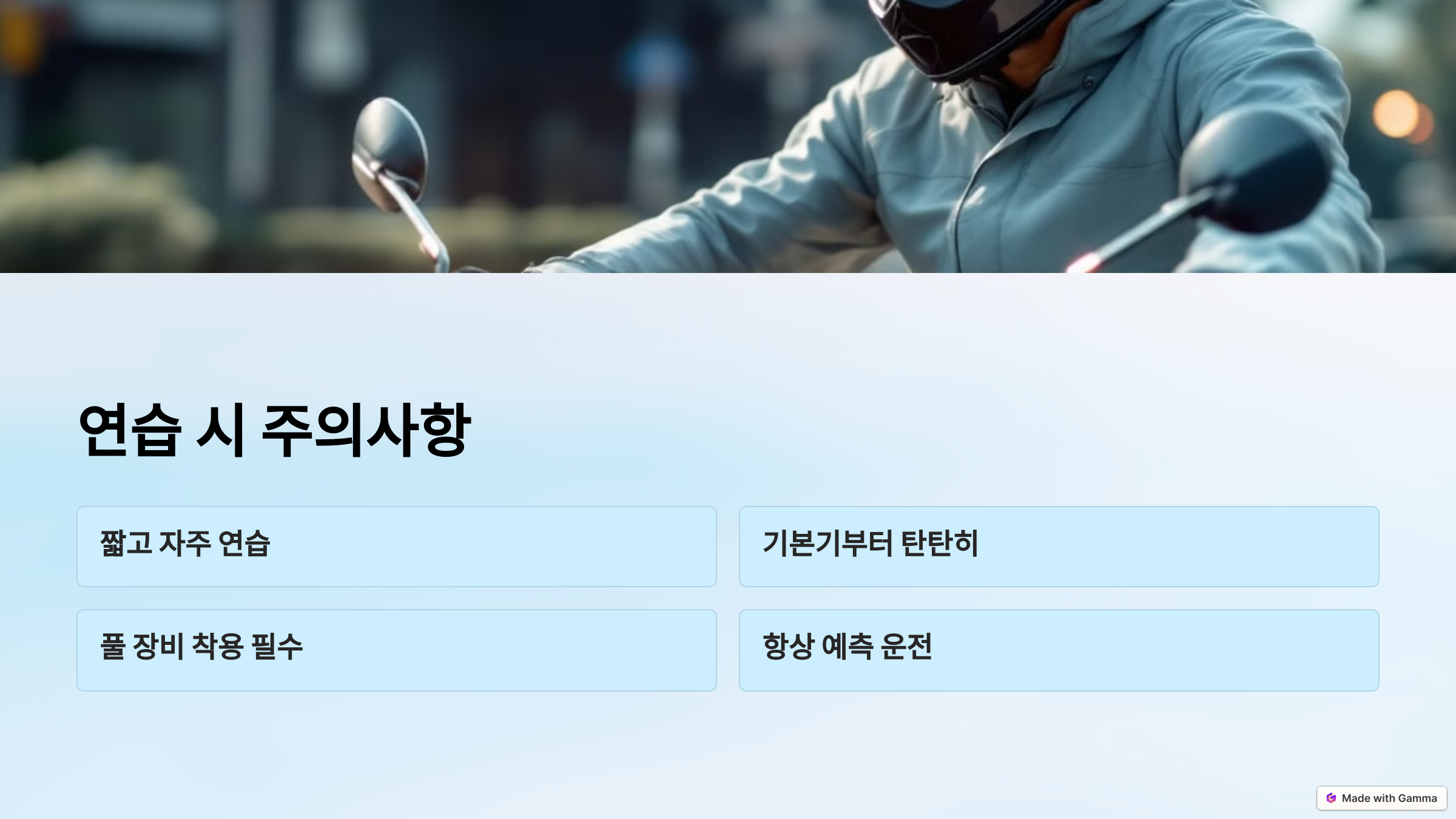 안녕하세요, 여러분! 🏍️ 혹시 오토바이를 처음 시작하셨나요? 아니면 면허는 땄지만 아직 도로 주행이 걱정되시나요? 초보 라이더라면 무엇보다 안전한 장소에서 충분히 연습하는 것이 중요해요!
