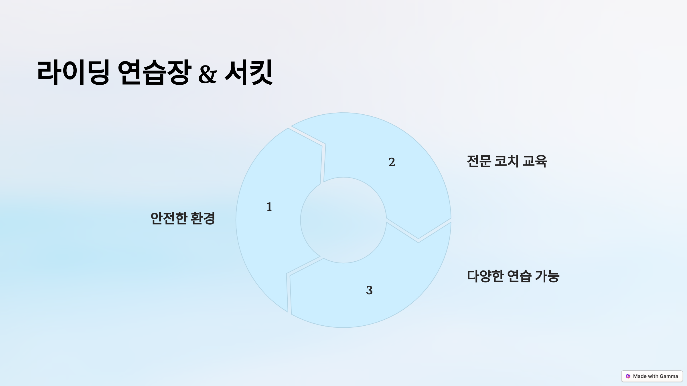 만약 체계적인 연습을 하고 싶다면 라이딩 연습장이나 서킷을 이용하는 것도 좋은 방법입니다. 특히 서킷은 초보자도 안전하게 연습할 수 있도록 전문 코치의 교육을 받을 수 있어요.